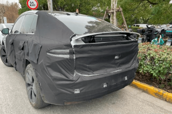 车侧部分,新车采用了溜背式设计,整体线条非常流畅,同时,测试车配有尺寸比较宽大的扰流板,凸显出车辆的运动定位。