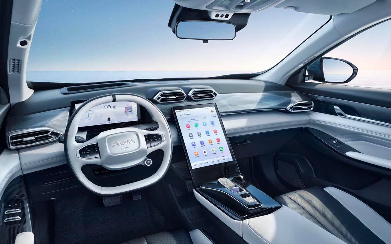 整个车内座舱以简洁风格为主,并采用了分层设计,所有操作均要在中控大屏上完成,仪表盘也采用大尺寸的液晶仪表,水晶电子挡杆档次感十足。