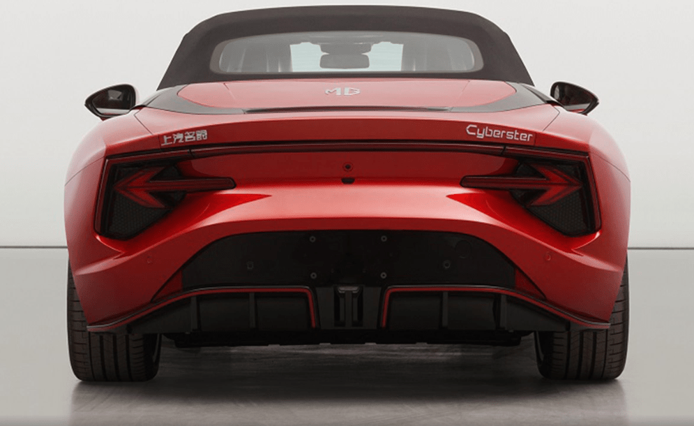 不过我个人更喜欢名爵Cyberster的车尾设计,它不是简单地采用贯穿式尾灯,相比竞争对手,这款车还在尾灯的两侧设计了箭头样式的点亮单元,一方面提高了该车型的辨识度,另一方面也让消费者能够得到更加优秀的安全性体验。同时,名爵Cyberster的后包围采用了方扩散器装饰,这样的设计能够优化整车风阻系数,起到节能和提高整车性能的作用。