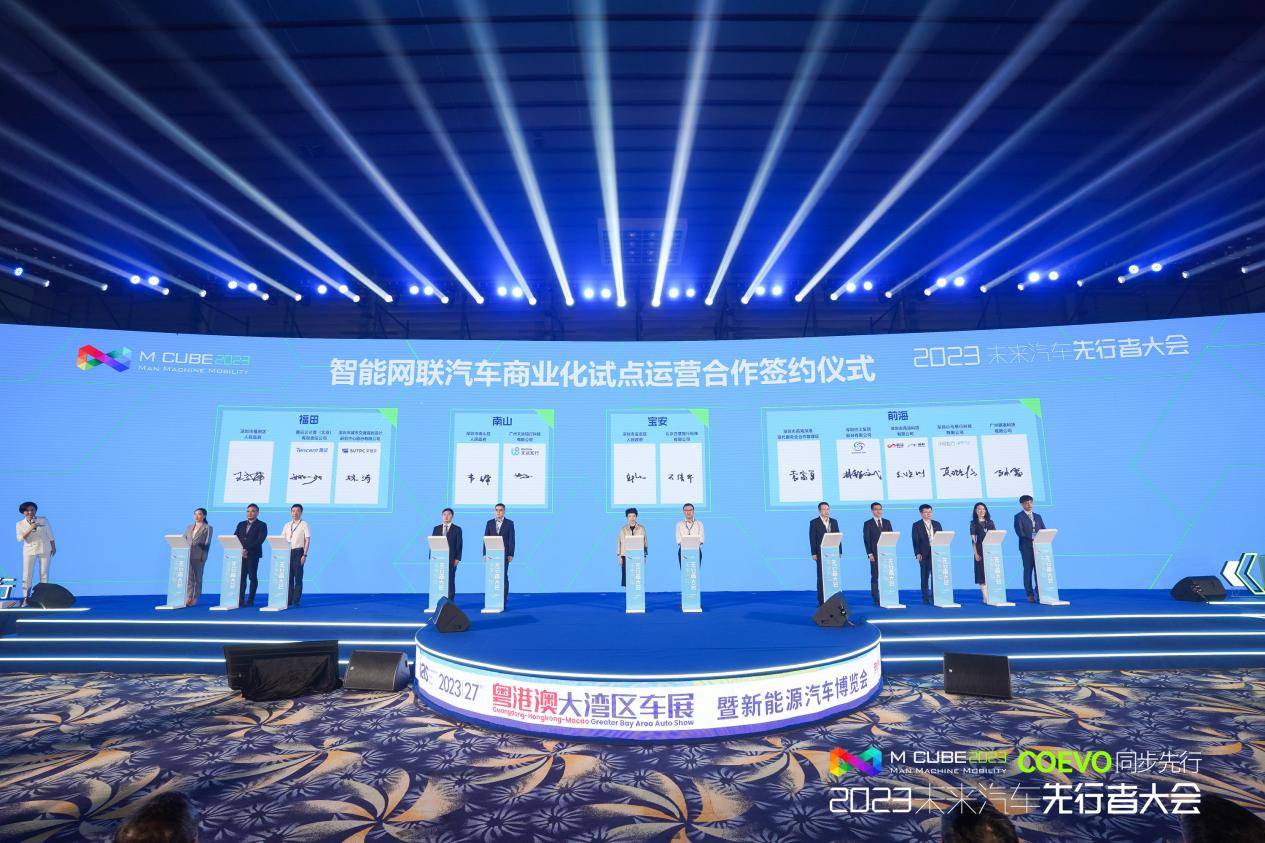 紧接大会开幕短片《百年变迁,智行未来》,深圳市福田区、南山区、宝安区人民政府、前海管理局和前海深港现代服务业合作管理区,分别同腾讯云计算(北京)有限责任公司&深圳市城市交通规划设计研究中心股份有限公司等8家企业签订一系列智能网联项目落地协议。