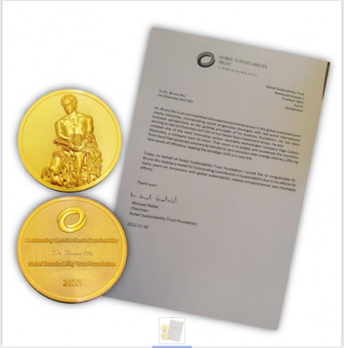 获首届诺贝尔可持续发展杰出贡献奖章