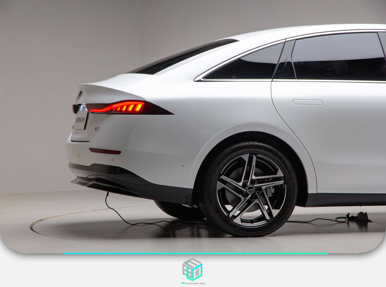 D7 EV车尾造型不复杂,尾灯内部灯带造型来自“电”元素,在混动MDH版本中与前大灯组相互呼应。