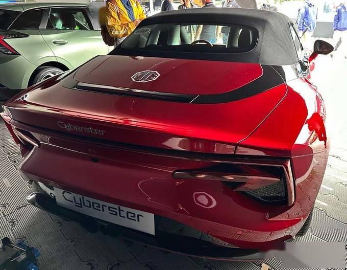 Cyberster高度还原了概念车的外观设计,尺寸比哪吒GT小一圈。车侧采用软顶机械敞篷结构,搭配多辐条运动轮圈,尾灯组呈箭头样式,比同系列宝马Z4更漂亮。