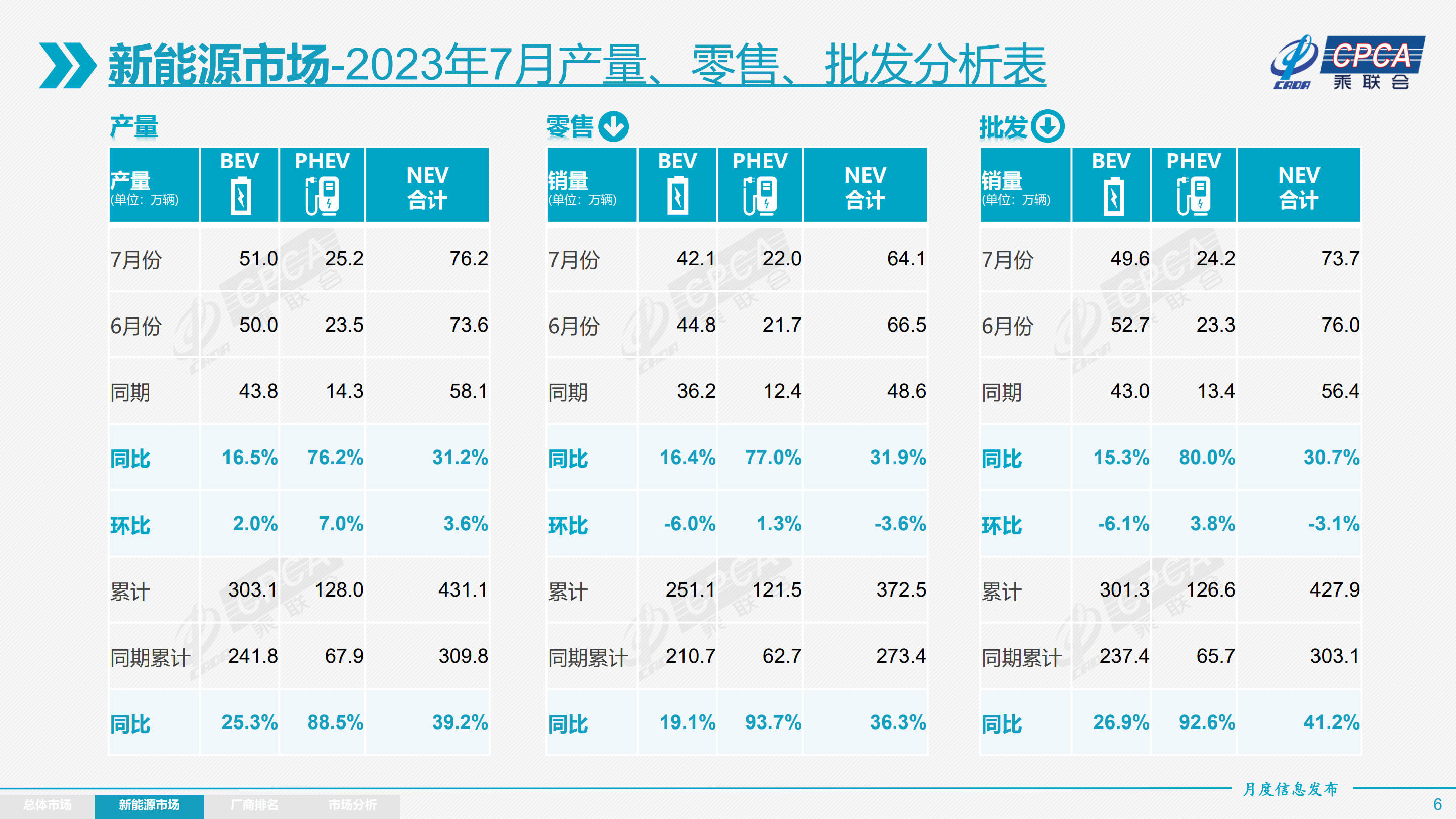 4、新能源车生产、零售、批发销量