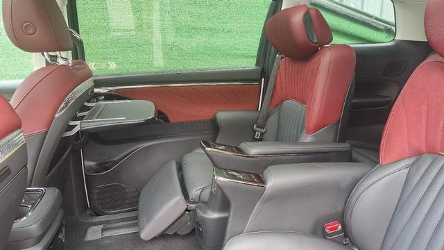 作为商务MPV的卖点,传祺E9第二排头等舱座椅,配有12向调节高档真皮座格集通风、加热、按摩及宽大电动腿托于一体,并配有可收纳小桌板和音乐头枕。