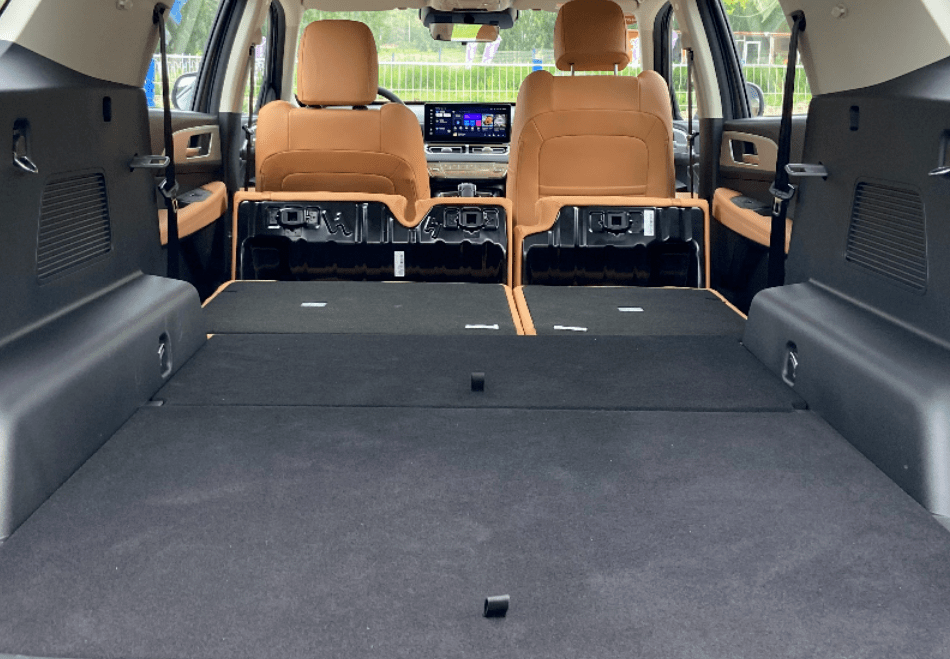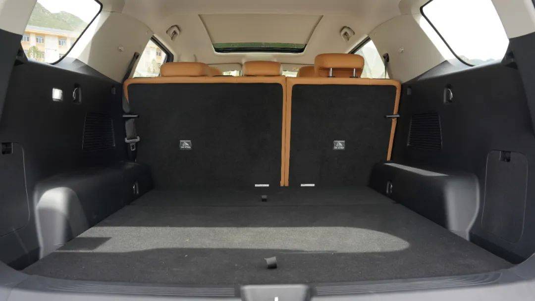 假如说将第二排座椅放倒,后备厢空间将会得到进一步扩张,容积达到2116L,纵深也达到了1965mm。