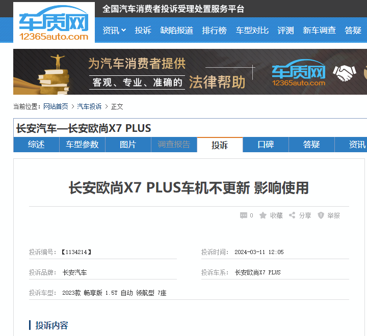 遗憾的是,在车质网上可以看到大量关于长安汽车车机系统老旧,以及不升级的投诉,这对我们的观点进行了直接印证。