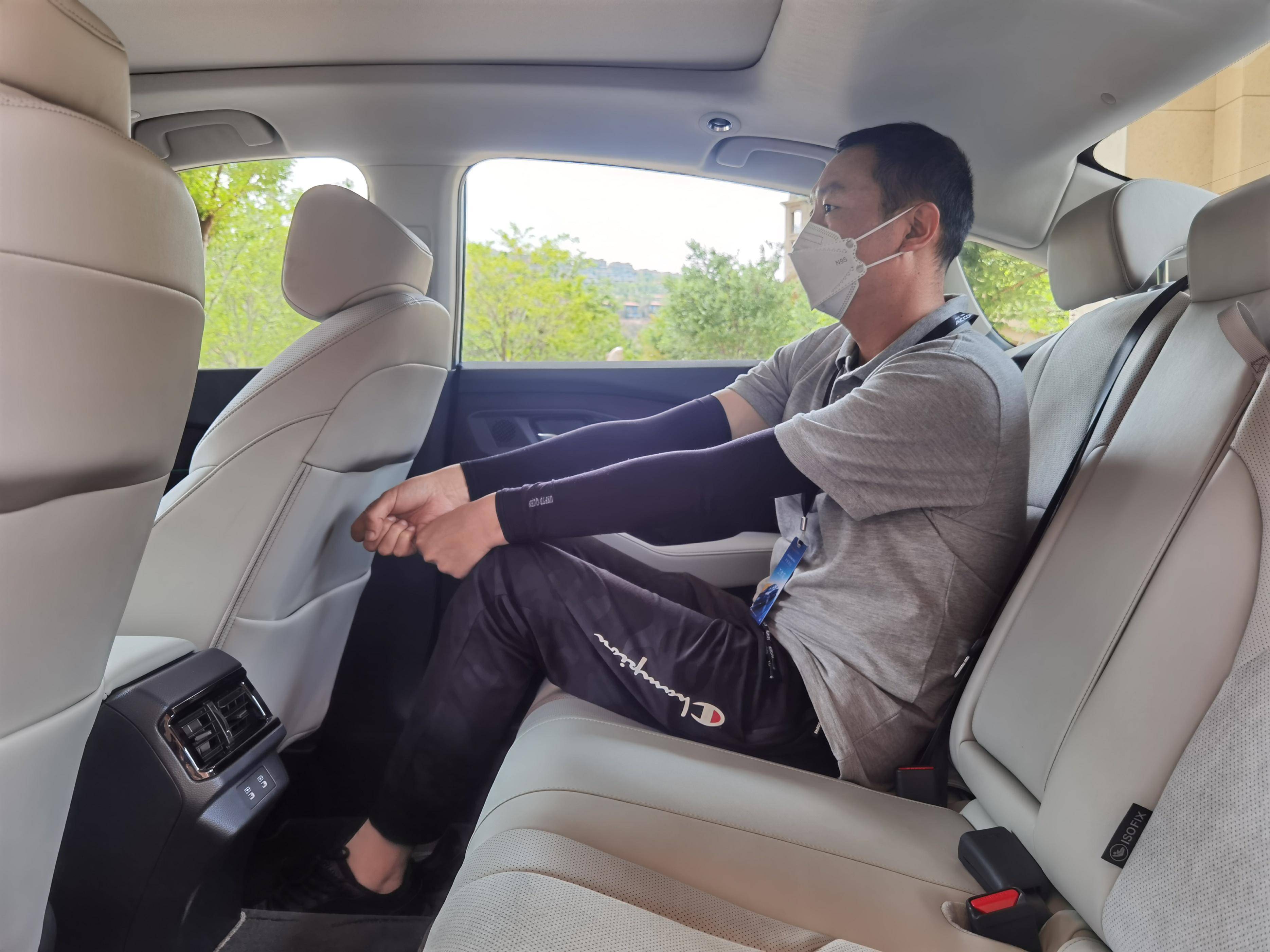 从空间上,全新雅阁e:PHEV得益于Honda Architecture新架构带来的高刚性、低重心、轻量化等车身优势特性,在调整好驾驶位后在后排头部空间还有2指左右,腿部空间还有2拳多的距离。另外,它座椅的设计特别符合人体工学,内部的填充材料也很厚实饱满,坐上去弹性十足,整体舒适性很高。