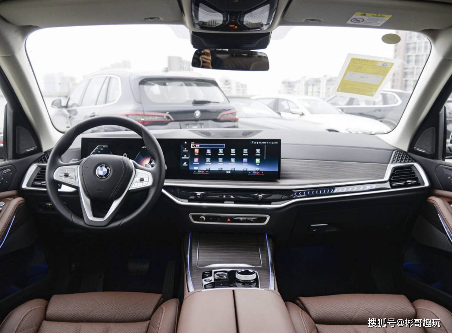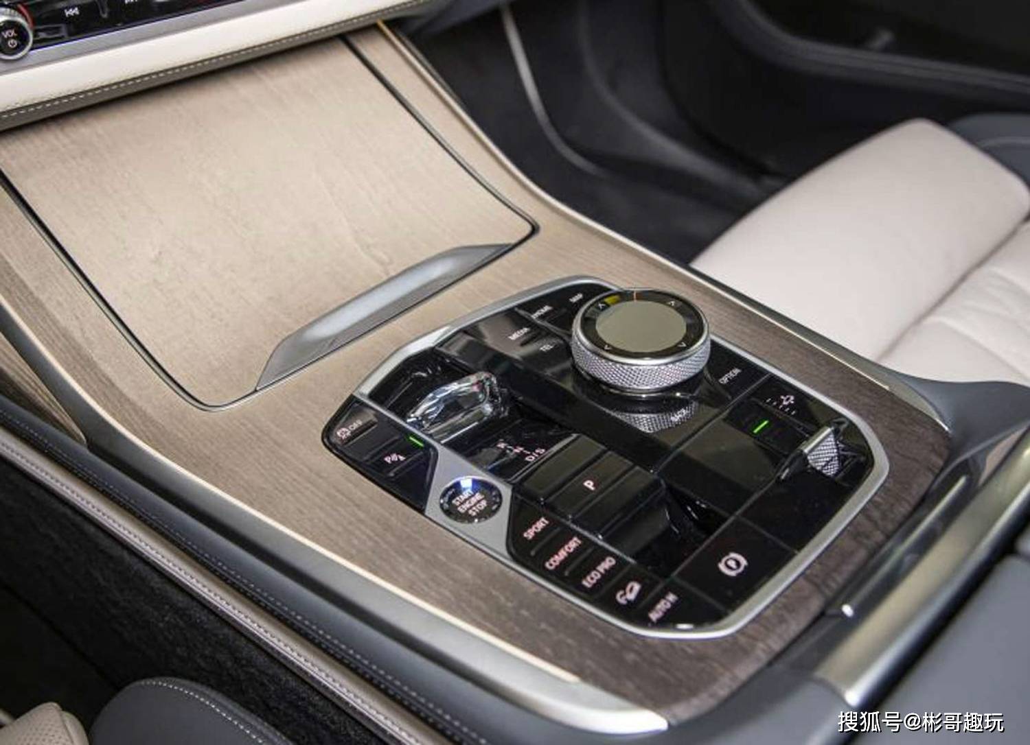 车内部分,宝马X7采用了真皮与木纹饰板进行装饰,其中在中控台与变速箱操控台表层,配备了木纹理装饰板,质感与奢华感凸显。此外,在中控台处,还搭配了不少亮黑色饰板,右侧还设计了X7的字样,彰显其尊贵身份。变速箱则采用了宝马最新的电子拨片式挡把,选用了水晶材质,前方的杯架则采用隐藏式设计,具有加热、制冷功能。另外,该车还配备了12.3英寸的数字仪表盘和14.9英寸的中央触控显示屏的大联屏设计,以此加深车内的科技氛围。