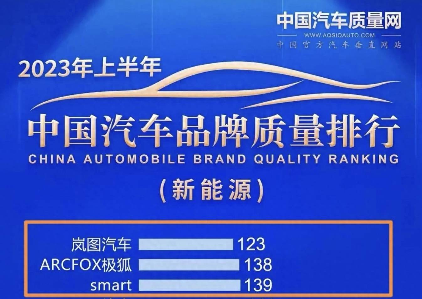 近日,中国汽车质量网发布了2023年上半年中国新能源汽车品牌质量排行。此次评比共有34个品牌上榜,其中smart品牌排名第三,所表现出的潜在缺陷风险处于较低水平,可见smart在质量口碑方面表现还是相当不错的。产品是最好的广告,好的口碑好的销量绝对与产品质量密不可分。