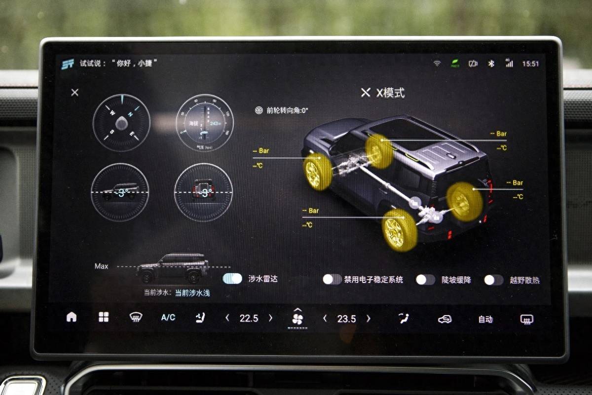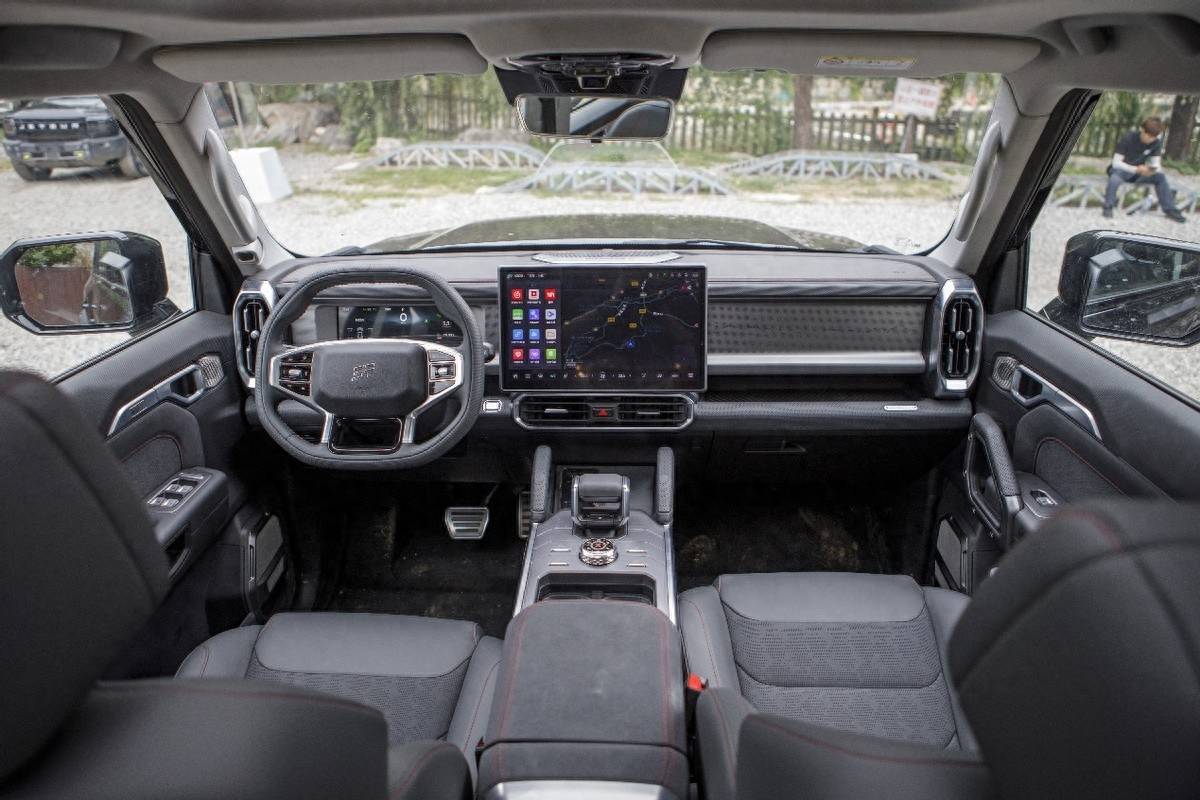 动力部分,我们试驾的鲲鹏动力2.0T车型的最大功率为187kW,最大扭矩390N·m,传动系统匹配的则是麦格纳7挡湿式双离合器变速箱。新车支持运动、标准、经济、雪草、泥泞、岩石6种常见的驾驶模式,以及能够智能识别路况切换相应驾驶模式的X模式,可以说是越野初学者神器。