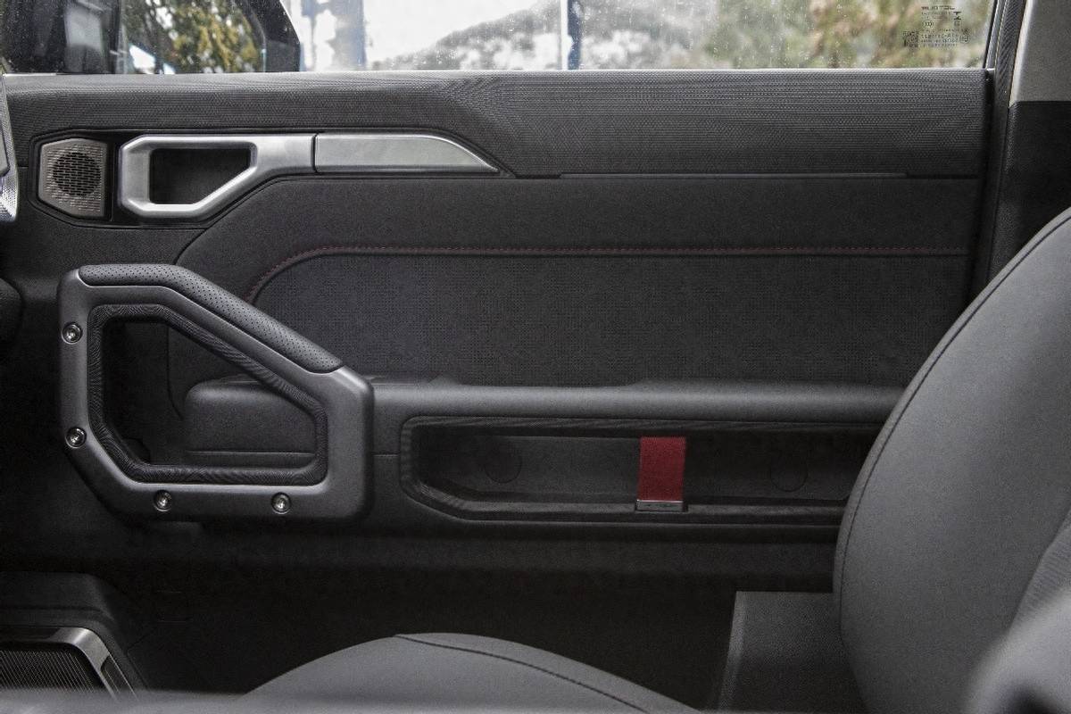 车身侧面使用了大量平直的线条设计,外扩的轮眉、黑色防擦条进一步提升硬派越野属性。两侧宽大的脚踏采用开阔式设计,为乘客进出车辆提升了一定的便利性,上下车时裤腿再被蹭脏就只能怪自己不小心喽。车顶行李架处还配备了电源接口,方便安装拉力灯等照明设备。车身尺寸方面,新车的长宽高分别为4785/2006/1880 mm,轴距为2800mm。