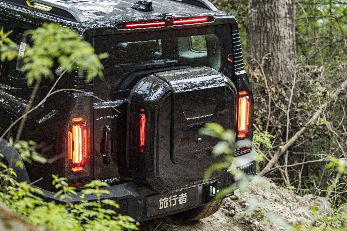 车辆尾部两侧采用纵向排列的LED尾灯组,层次分明,造型与头灯呼应。象征着硬派越野SUV的尾部“小书包”在捷途旅行者上面自然不会缺席,内装非全尺寸备胎。据官方介绍,还将提供无“小书包”备胎罩、直接悬挂全尺寸备胎的方案可供选择。