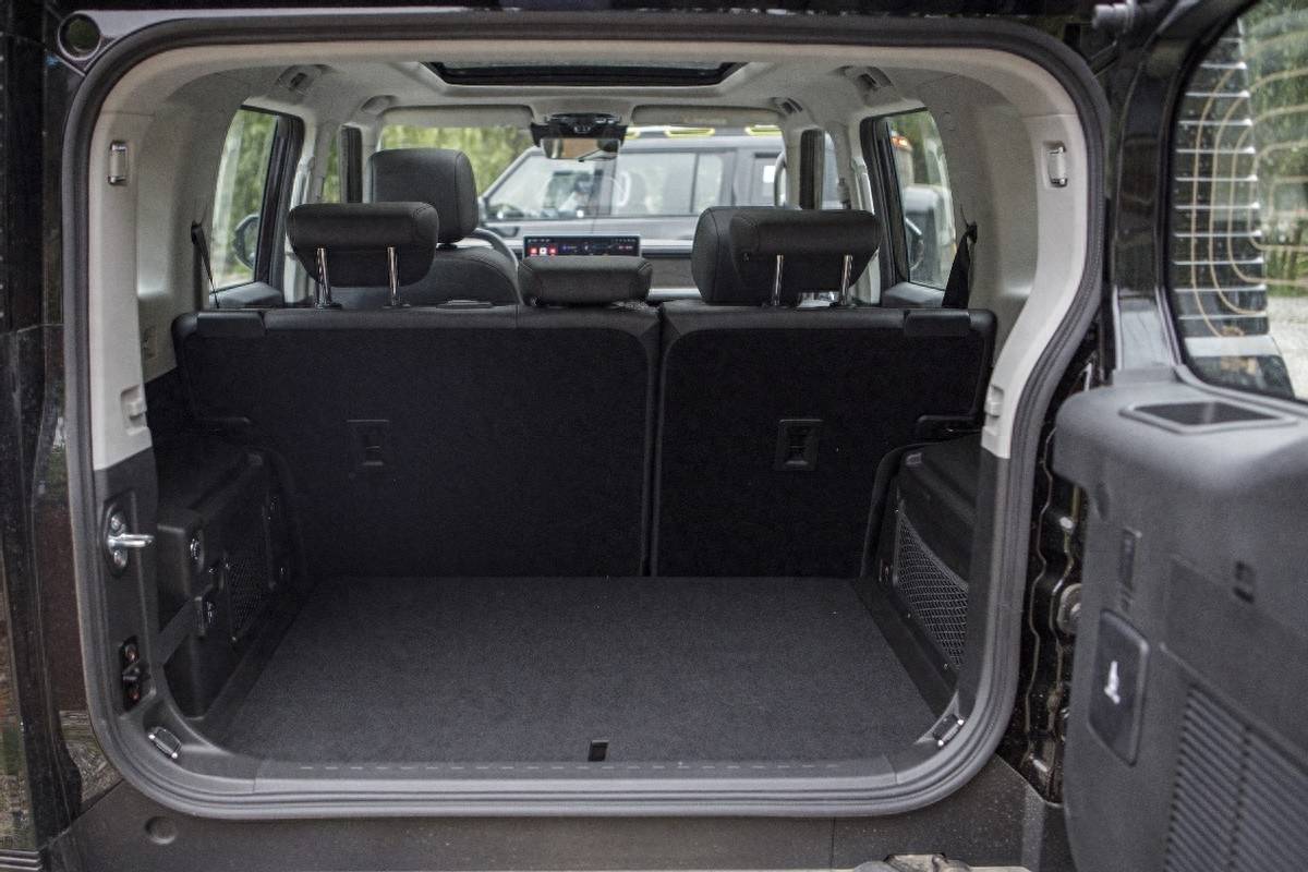 新车的后备厢十分规整,并且设有多处固定锚点及多处储物空间。尾门采用电吸式,上方储物槽可放置手机等小物品,内壁两侧可向下翻转出两个杯架,下方还可通过旋转对尾门进行锁止,为野外露营等场景带来更多拓展空间。此外,三角架也被隐藏在其中。