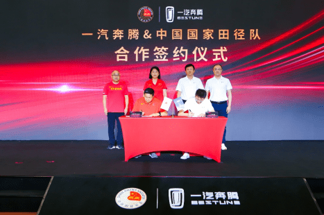 高度相似的成长路径让中国国家田径队和一汽奔腾互相之间有着高度认同感,8月10日一汽奔腾与中国国家田径队合作签约仪式在北京举行,宣告品牌正式成为中国国家田径队官方合作伙伴,中国国家田径队男子三级跳远运动员、实力名将朱亚明和女子100米栏运动员吴艳妮分别成为奔腾T90、奔腾小马产品代言人。