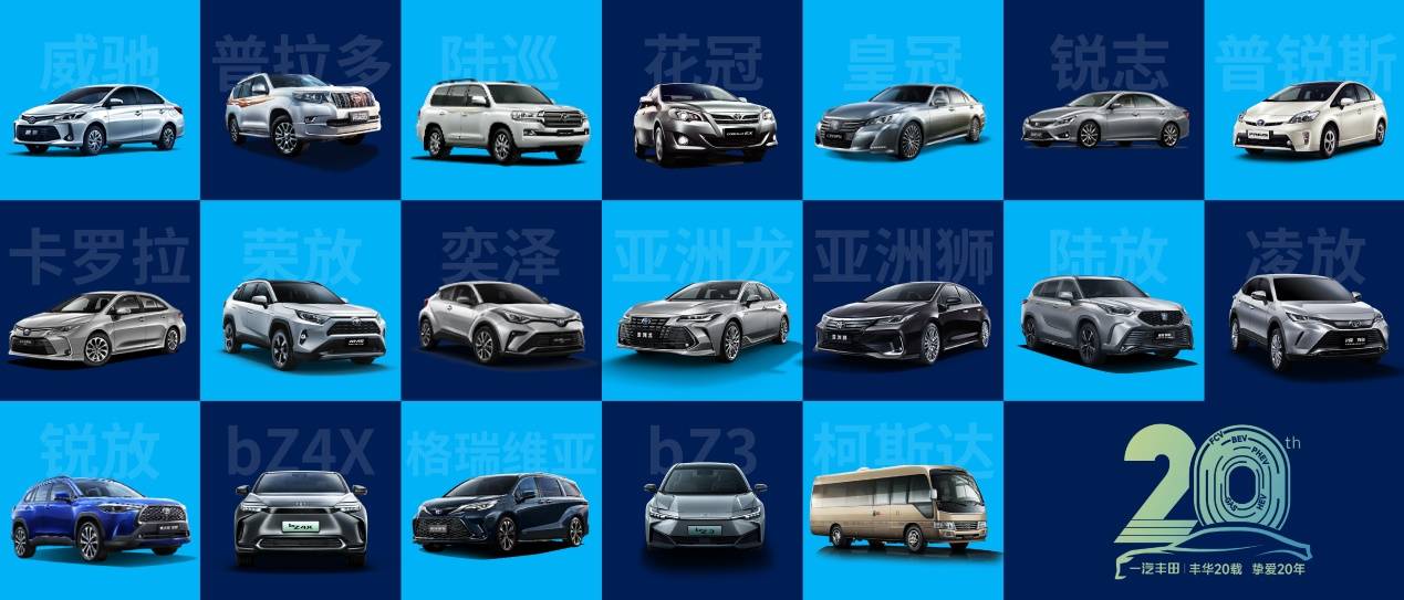从2003年开始,伴随中国汽车社会化进程的快速向前发展,一汽丰田心怀挚爱,砥砺奋进将中国一汽与丰田汽车合资的汽车事业在中国做大做强。纵观二十年来,一汽丰田的制造工厂数量由少变多、技术从传统到智能;经营领域从生产型企业到集研发、生产、销售、物流、移动出行为一体的产业布局;动力技术从最初的燃油到自2005年起探索新能源发展之路;投产车型由轿车到乘用车领域全覆盖,先后向市场投放了威驰、普拉多、陆地巡洋舰、花冠、皇冠、锐志、普锐斯、卡罗拉、荣放、奕泽、亚洲龙、亚洲狮、陆放、凌放、锐放、bZ4X、格瑞维亚、bZ3、柯斯达等近二十个品牌的车型,覆盖三厢、两厢轿车,小型、紧凑型、中性SUV,MPV和客车细分市场。一汽丰田始终秉持的高品质、高耐久性、高可靠性的QDR生产标准,使其生产车型获得J.D. Power中国车辆可靠性研究(VDS)第一名,中国汽车用户满意度指数测评(CACSI)第一名的成绩,并在服务领域八连冠、九加冕获得丰田服务全球金奖。二十载精耕细作,一汽丰田赢得超过千万用户的信赖与“开不坏”的口碑,现已成为丰田在华用户规模最大的合资事业体。