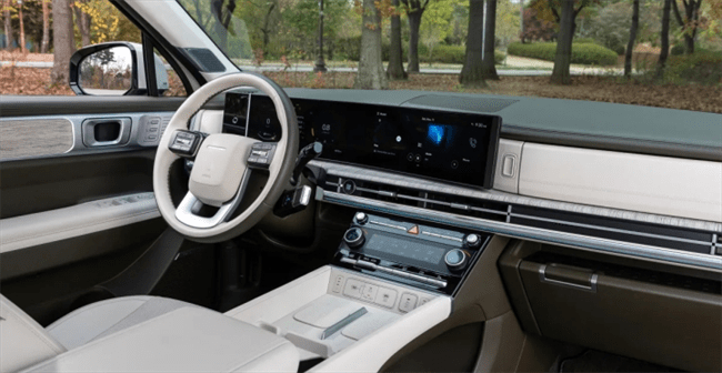 内饰部分,新车整体采用较为简洁的风格。采用连屏设计,方向盘内外异色,保留了不少实体按键;中控下方也有两块无线充电区域,颇有极简科技风的观感。空调出风口采用贯穿式造型,外圈与车门中部均有纵向的木饰纹路,更具高级气息。二三排座位均可平铺,提供超大的车内休闲空间,能够应对更多出行场合。