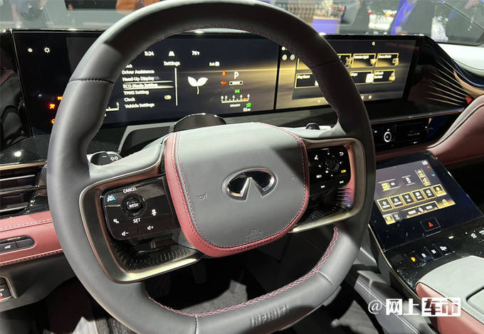 动力部分,英菲尼迪全新QX80车型将换搭3.5T V6双涡轮增压发动机,最大输出功率可达336kW,峰值扭矩699N·m,传动系统升级为9速手自一体变速箱。内饰方面,新车换装了全新造型的四辐式多功能方向盘,并搭载双14.3英寸一体式悬浮式屏幕,下方还提供了9英寸触控控制面板,具有驾驶模式选择器、空调控制、前排座椅调节等功能。