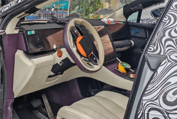 从图中可以看到,仰望U7延续了品牌标志性的对称设计风格,内饰采用紫色与米黄色搭配,展现出时尚大方的视觉效果。