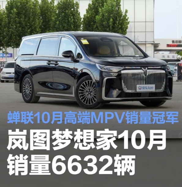11月11日,10月汽车销量榜单发布,岚图梦想家以单月6632辆的销量蝉联10月高端MPV销量冠军,自2022年上市至今,岚图梦想家已累计交付超15万辆。
